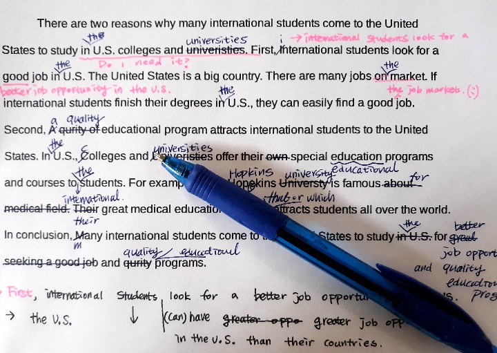 또한 영어 라이팅을 잘하기 위해선 수정에 수정을 할 수 있는 실력과 끈기를 기르는 게 좋다. 일단 자신이 만족할만한 글을 써도 그것이 80%밖에 완성되지 않았다는 마음을 가지고 수정을 하면 더 좋은 글이 나온다.