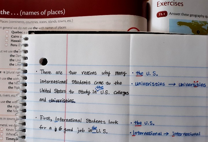 이렇게 정리된 영어 라이팅 공책은 자주 하는 실수를 방지할 수 있기 때문에, 꼭 만들 나서 시간이 날 때마다 보는 것을 추천한다. 특히나 라이팅 시험을 보기 전에 한 번 살펴보면 더욱 좋다.