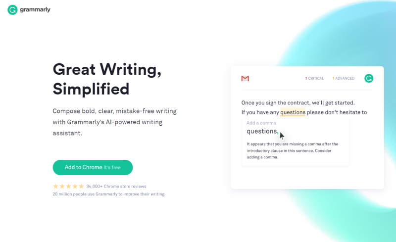 그래머리 Grammarly는 요즘 내가 제일 많이 쓰는 사이트이다. 크롬에 최적화된 프로그램으로 이메일을 쓸 때, 또는 블로그를 쓸 때 바로 서비스를 받을 수 있다. 그리고 가장 장점은 구글 서류 작성 시 바로바로 문법 에러가 고쳐진다는 것이다.