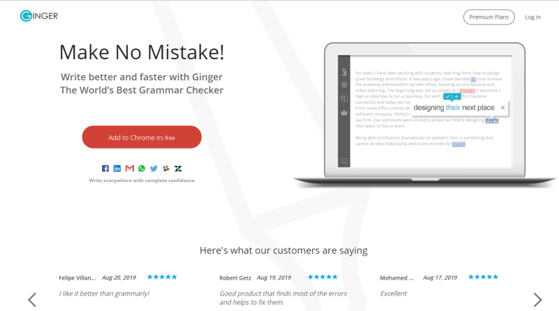 영어뿐만 아니라 다른 나라 언어로도 첨삭해 주는 진저 Ginger는 요즘 대규모로 광고 공세를 하고 있는 Grammarly보다는 조금 처지는 면이 있지만 여전히 그래머리에 라이벌로 여겨지는 첨삭 프로그램이다. 장점이라면 개인의 사전을 만들 수 있다는 것과 다른 언어로 첨삭 지도를 받을 수 있다는 것이다.
