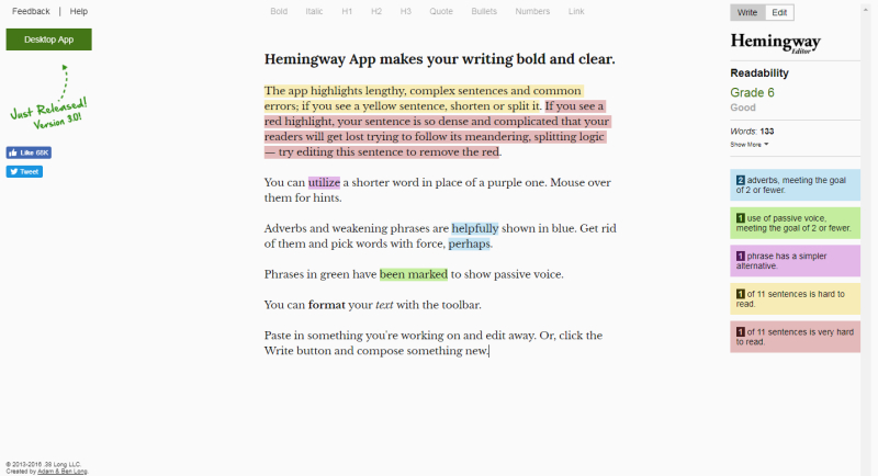 4. Hemingway Editor---->> http://www.hemingwayapp.com/